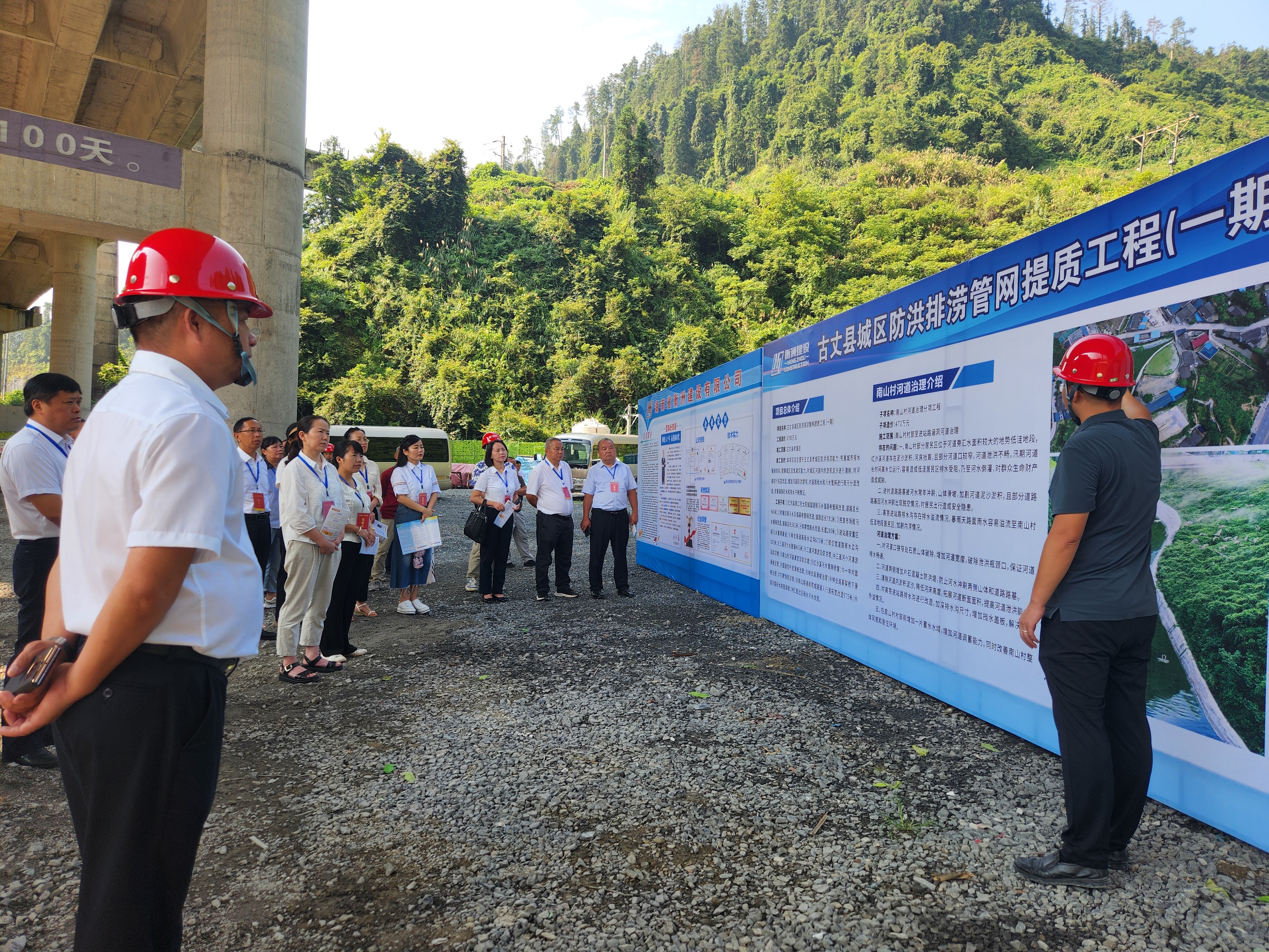 7月28日上午,全國、省、州、縣四級人大代表聯合調研組在古丈縣委副書記麻學清、縣人大常委會主任鄭良武帶領下,蒞臨湖南省衡洲建設有限公司(下簡稱:“衡洲建設”)承建的古丈縣城區防洪排澇管網提質工程(一期)視察指導。衡洲建設工程副總經理唐雪平全程陪同。